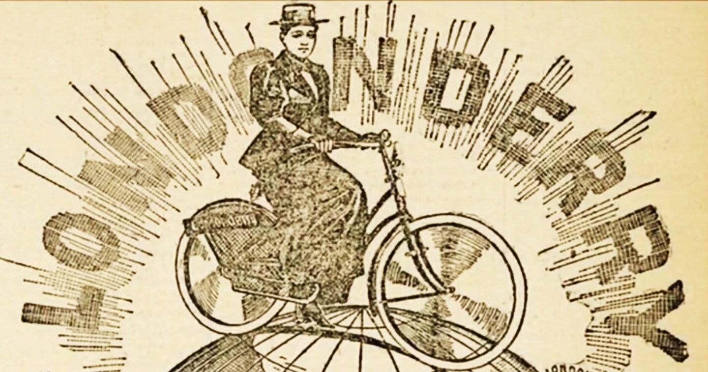 - Le 25 juin 1894, Annie Londonderry est la première femme de l’Histoire à réaliser le tour du monde à bicyclette. Avant elle, Thomas Steven avait réalisé entre 1884 et 1886 un tour du monde en grand-Bi (bicyclette avec la roue avant de très grand diamètre)
