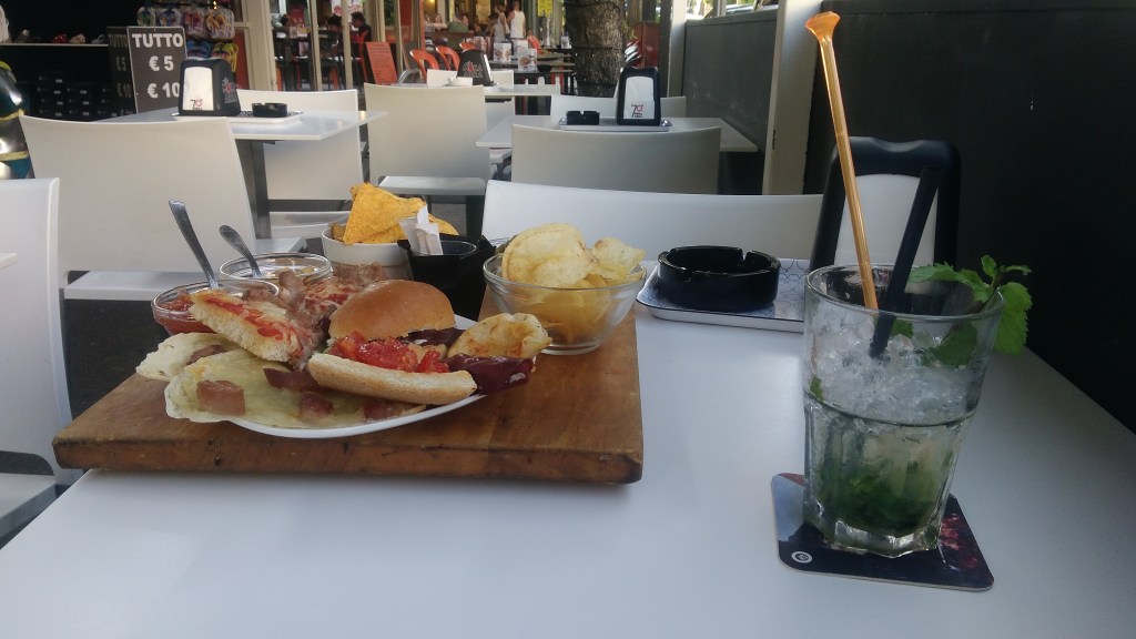 Comme dans tout le Nord de l’Italie, vous retrouverez des apéritivo très sympa dans plusieurs bars. Sur la photo de gauche, vous verrez un apéritivo avec un petit Mojito, parce que c’est les vacances quand même.