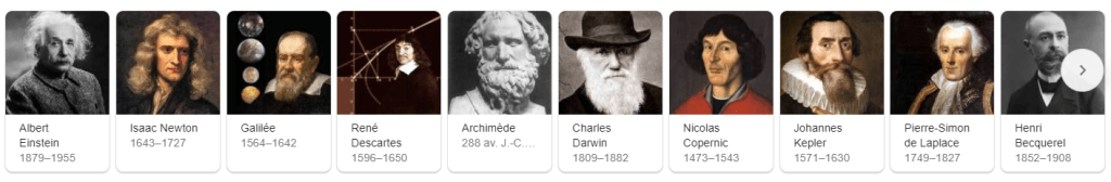 J’ai suivi des études de sciences, je suis physicienne et pourtant, sur ces 10 femmes ci dessus, je ne suis capable de parler que des travaux de 4 d’entre elles… J’ai fait la même expériences pour voir avec une recherche google « hommes scientifiques » j’ai obtenu un bandeau d’une cinquantaines de scientifiques hommes, que je connaissais TOUS, j’avais étudié les travaux de chacun d’entre eux! Et je présume que bon nombre d’entre vous reconnaîtrons facilement tout ces hommes, surtout s’ils ont suivi un cursus scientifique comme le mien.