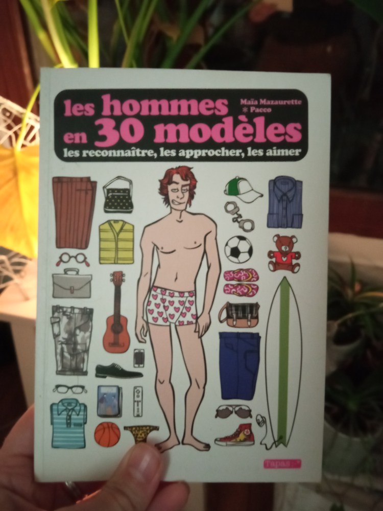 Et puis j’ai vu ce livre et je me suis dit qu’il était parfait pour cette rubrique. J’ai opté pour le livre « les Hommes en 30 modèles » de Maïa Mazaurette et Pacco. Vous connaissez peut-être l’autrice via ses chroniques du dimanche dans Le Monde ? Et bien là elle ne parle pas de sexe, mais d’hommes. Ce livre se présente un peu comme un bestiaire qui décrit les différents spécimens (aussi bien masculin que féminin) avec beaucoup d’humour.