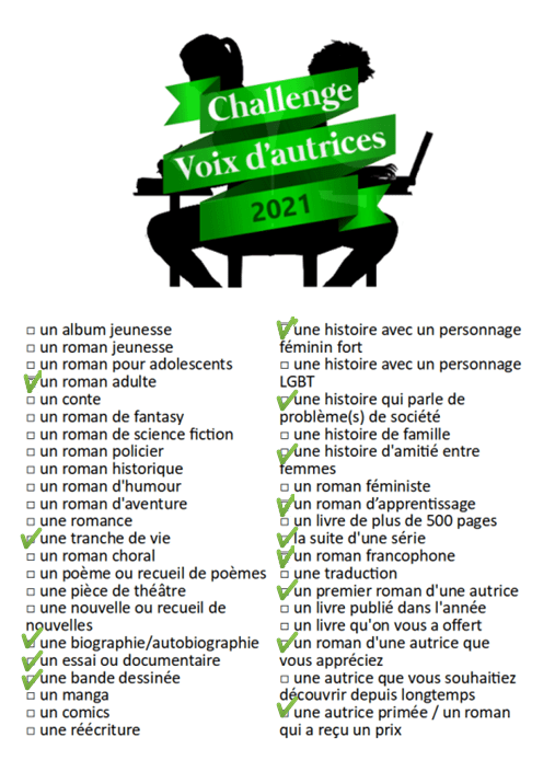 Challenge voix de femmes : Cette lecture valide la catégorie « un roman adulte »