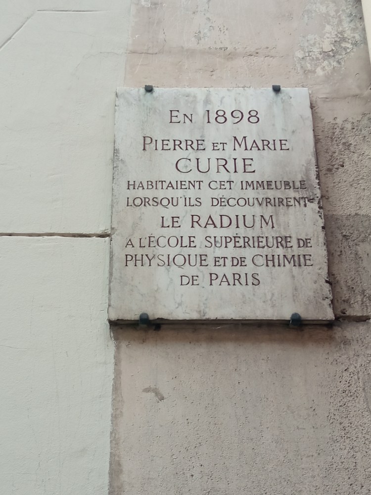 Au 24 rue de la Glacière, vous apercevrez une plaque commémorative indiquant qu’elle et son mari ont vécu à cette adresse. Marie vivait là lorsqu’elle fit la découverte du radium.