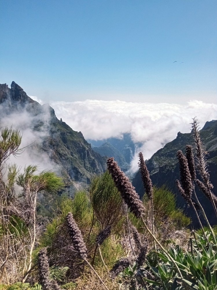 Il s’agit d’une marche difficile, car on descend le Pico Ariero pour ensuite remonter le Pico Ruivo. Si comme nous votre voiture est au Pico Ariero, il vous faut donc revenir sur vos pas et descendre le Pico Ruivo pour grimper le Pico Ariero. Nous n’avons pas fait la randonnée jusqu’au bout, nous n’avons pas gravi le Pico Ruivo, car la descente du Pico Ariero, puis la remontée pour rejoindre notre automobile qui était déjà très éprouvante. Nous nous sommes arrêtés juste avant la montée du Pico Ruivo (et avons éviter les troupeaux de randonneurs des tour-opérateurs.)