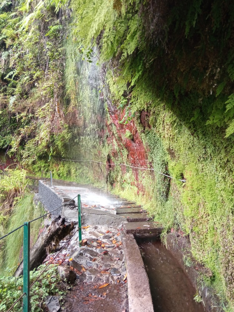 Ce parcours commence au Parc Forestier de Queimadas et suit le long de la levada do Caldeirão Verde dans la commune de Santana. Les Caldeirão sont traduits en Français par « chaudrons ». Il s’agit de formations géologiques liées à une dépression créée par le volcanisme. Celle-ci est limitée par une falaise verticale circulaire ou elliptique que l’on retrouve ici dans les deux chaudrons.