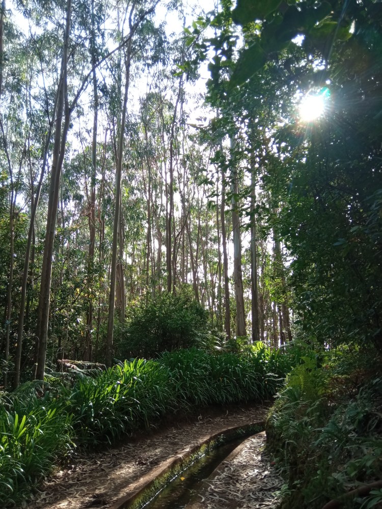 Ce chemin commence à la Station d’Épuration des Eaux de Quebradas (pas très sexy comme point départ), située à São Jorge et se termine près du point d’origine de la levada dans la zone de Ribeiro Bonito. On croise sur le chemin des magnifiques Maracujas à banane grimpante. On traverse une forêt d’eucalyptus dont l’odeur est incroyablement agréable.